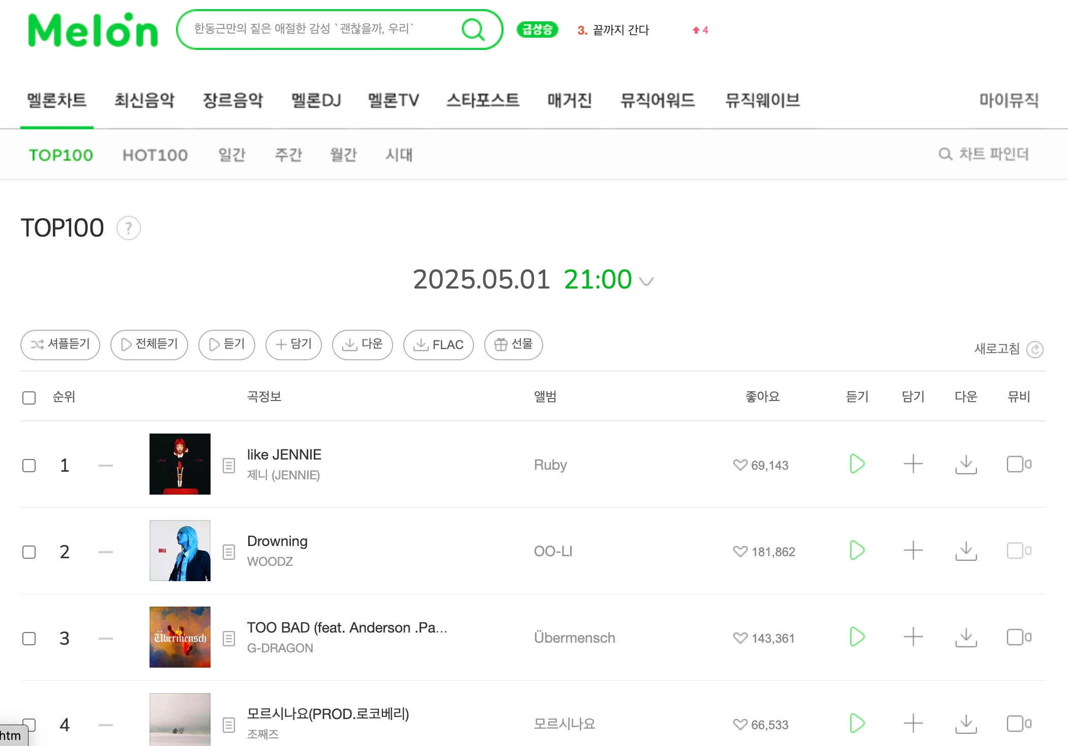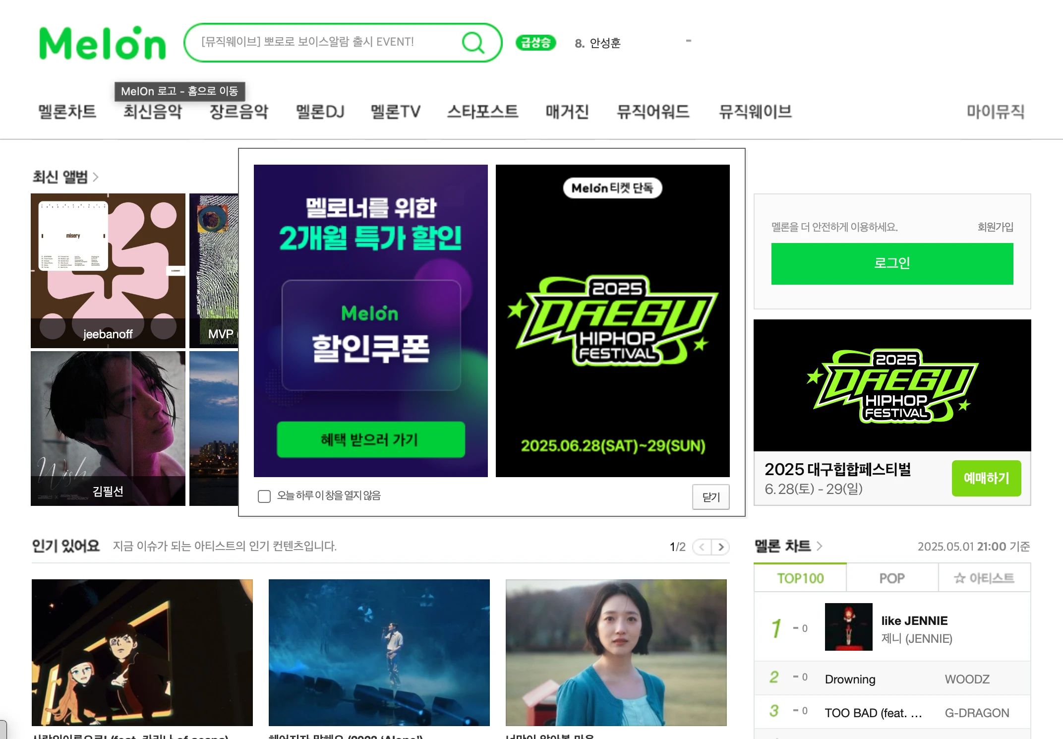 국내 최대 음원 스트리밍 서비스, 최신 음악과 차트에 강점